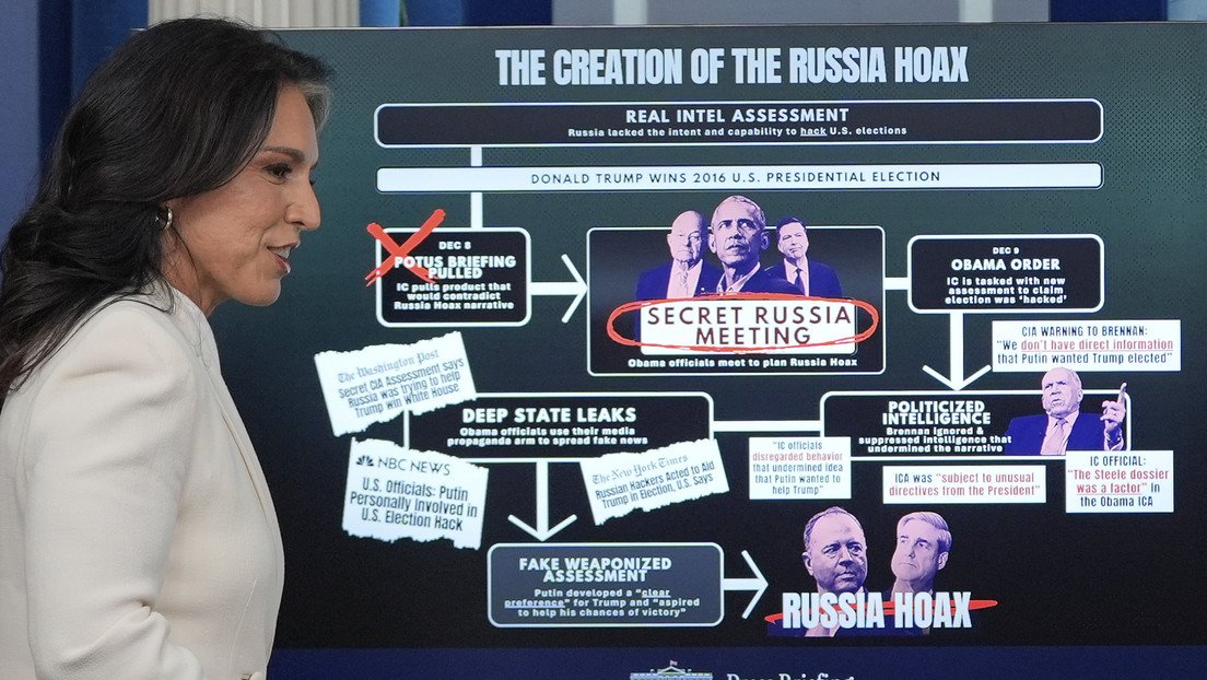 La directora de inteligencia nacional de Estados Unidos, Tulsi Gabbard, ha publicado en la red X dos correos electrónicos recién desclasificados que dejan al descubierto que un predecesor suyo en el cargo, James Clapper, ordenó a sus subordinados fabricar pruebas de la supuesta implicación de Rusia en la elección de Donald Trump para su primer mandato presidencial, y hacerlo de manera coordinada.