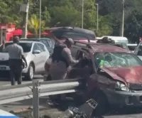 Un accidente de tránsito múltiple ocurrido este domingo en la autopista 6 de Noviembre, a la altura del cruce de Haina, dejó varias personas lesionadas y provocó un significativo congestionamiento vehicular en ambos sentidos de la vía.