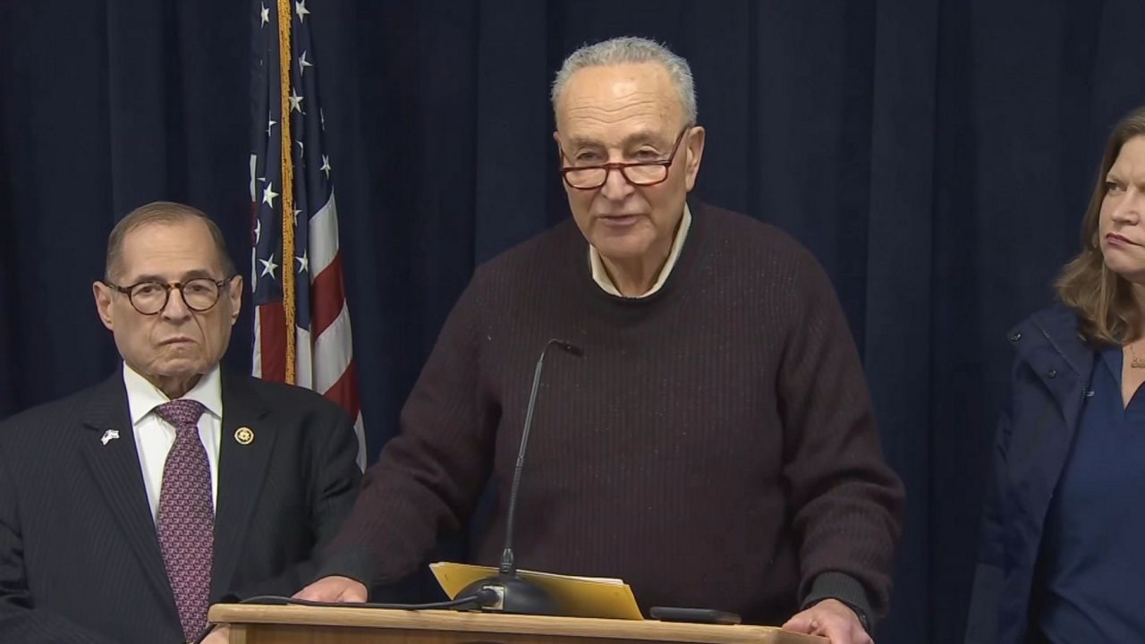 “Estamos aquí después de las amenazas de bomba de anoche en varias sinagogas de Nueva York. Al escuchar sobre la amenaza se te hunde el corazón y esperas que sea un engaño. En este caso, y gracias a Dios, lo fue», dijo el senador demócrata Chuck Schumer.