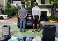 Santo Domingo.- Agentes de la Dirección Nacional de Control de Drogas (DNCD) y miembros del Ministerio Público, arrestaron a dos hombres y ocuparon una maleta, llena de prendas de vestir, impregnadas con presunta cocaína, durante un operativo de interdicción conjunta ejecutado en el municipio Santo Domingo Este.