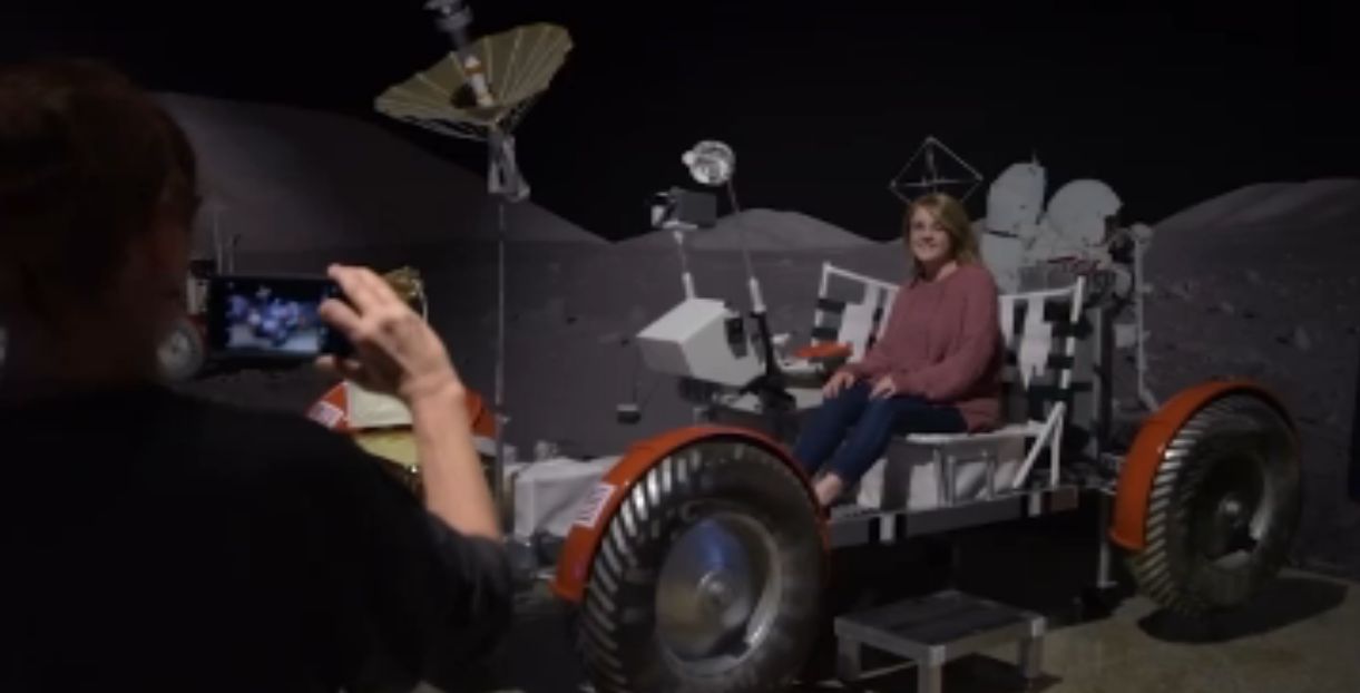 Los visitantes pueden subir a bordo de un modelo del vehículo lunar, y realizar un paseo lunar virtual.