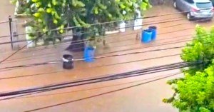 Santo Domingo.–Inundación en la avenida José Contreras, en la Zona Universitaria, próximo a la Universidad Autónoma de Santo Domingo (UASD), como consecuencia de las lluvias asociadas al paso de Melissa.