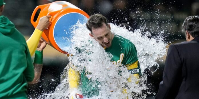 Aún así, Rooker salió como el héroe incuestionable. Un baño de Gatorade en el campo después del juego después de cruzar el plato fue seguido por una ducha de cerveza de celebración dentro de la casa club de los Atléticos.