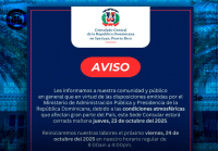 El Consulado General de la República Dominicana en San Juan anunció este miércoles el cierre temporal de sus oficinas este jueves 23 de octubre de 2025, como medida preventiva ante los efectos de la tormenta tropical Melissa, que afecta gran parte del territorio dominicano y el Caribe. (Sigue leyendo…)