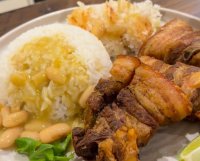 rewrite this title Comida de las 12: Chicharron, habichuelas blancas y concón