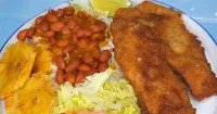 Comida de las 12: Tilapia empanizada, arroz, habichuelas y tostones