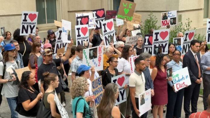 Funcionario Electos y Defensores se Congregaron el Jueves en Las Escaleras del Palacio de Justicia de Tweed en Manhattan Para Exigir la Liberación de Mamadou Mouctar Diallo, Quien se Encuentra Bajo Custodia del Servicio de Inmigraciónon y Control de Aduanas de Estados UNIDOS (Ice).