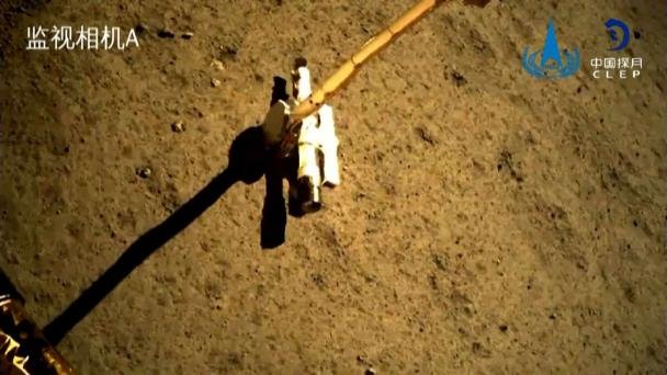 Igualmente tomó fotografías de la superficie lunar y plantó una bandera china, roja y amarilla, en el suelo gris de la cara oculta del satélite.