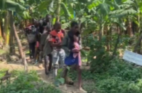 rewrite this title Detienen haitianos que se escondían en un platanal (video)