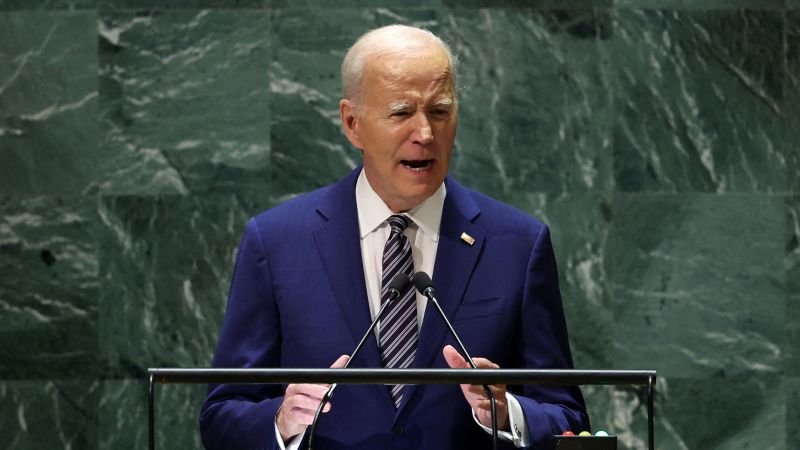 “Por segundo año consecutivo, esta reunión –dedicada a la resolución pacífica de conflictos– se ve ensombrecida por la sombra de la guerra. Una guerra ilegal de conquista emprendida sin provocación contra su vecina Ucrania”, dijo Biden.