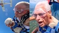 rewrite this title Don de 90 años se jondea en paracaídas en honor a su difunta esposa (video) – Remolacha