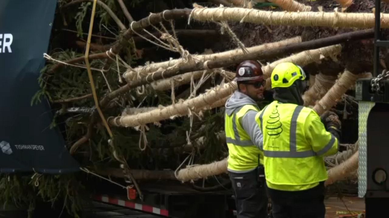 El árbol de Navidad del Rockefeller Center de este año hizo su debut en Midtown el sábado por la mañana.