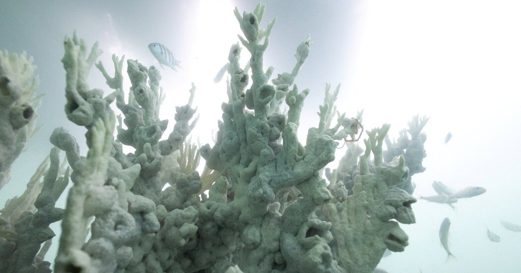 Pero ahora mismo, las temperaturas en el Caribe frente a Panamá, Costa Rica, Nicaragua y Colombia están alcanzando niveles que no se habían visto hasta semanas después, una señal ominosa después de la Calor que devastó los arrecifes de toda la región. el año pasado. Los científicos dicen que todavía están determinando la magnitud de las muertes por el blanqueo del año pasado. A estudio de los arrecifes frente a Huatulco en Oaxaca, Méxicoencontró una mortalidad de coral que oscila entre el 50 y el 93 por ciento, dependiendo del área del arrecife.