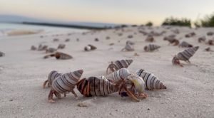 Timoteo Estévez: Cientos de Cangrejos Ermitaños o Makey salen del bosque seco del parque nacional Jaragua para desovar en la playa de Bahia de Las Águilas, un espectáculo de la naturaleza muy poco documentado que solo ocurre muy pocas veces.