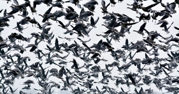 Los gansos árticos anidan en gran medida en el alto Ártico, pero a medida que la capa de nieve se derrite, los gansos tienen más espacio para anidar y reproducirse. Eso está permitiendo que su población se expanda.