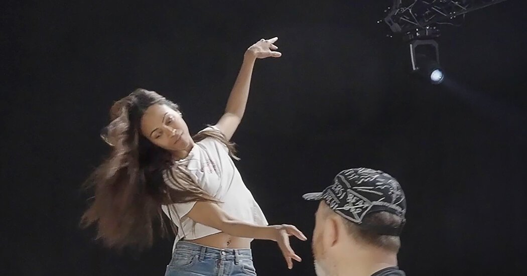 Mientras Saldaña se abre paso entre las mesas, su cuerpo se mueve con fuerza, girando, pavoneados, consumido por la confianza. Sus caderas giran; Sus extremidades se disparan como espadas. «Ella es una asesina», dijo Jalet. «Y esa es la cosa: quería usar el baile en esa película como una herramienta de resistencia, como un arma».