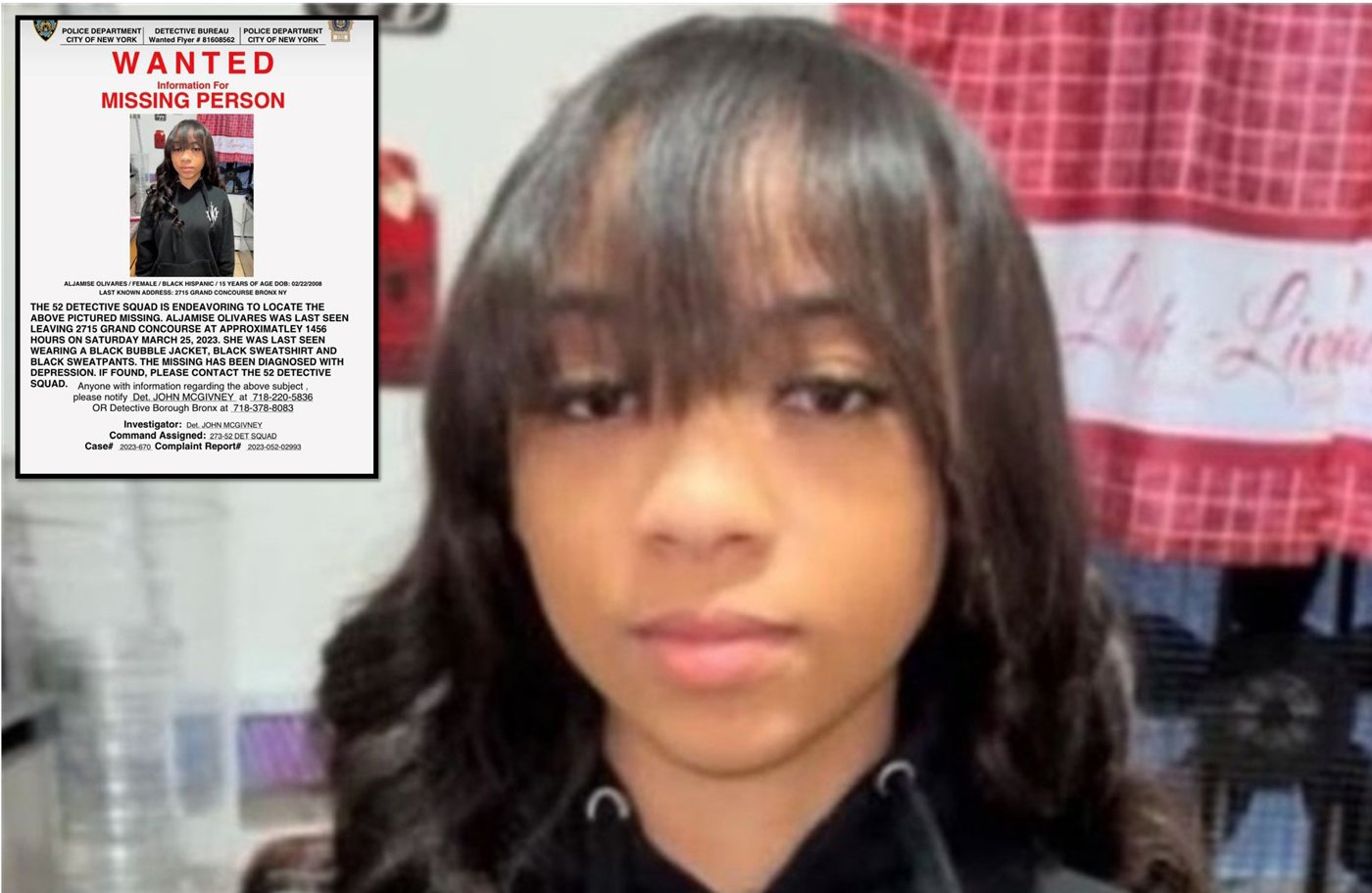 NUEVA YORK._ Los familiares y policías del cuartel 52 en El Bronx mantienen una intensa y desesperada búsqueda de la estudiante adolescente de origen dominicano Aljamise Olivares de 15 años de edad, desaparecida desde el sábado 25 de marzo en las inmediaciones de la avenida Grand Concourse en ese condado.