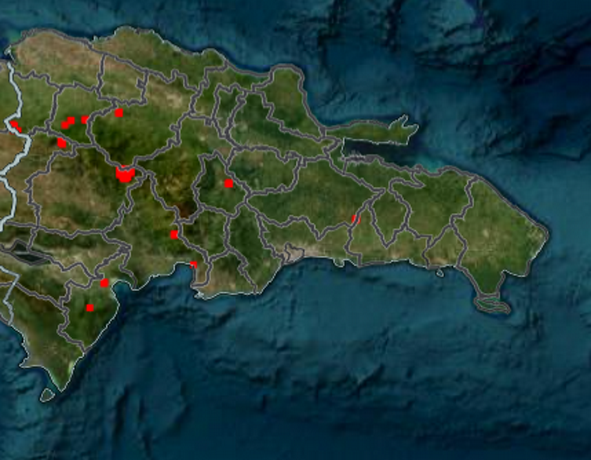 Aunque es notoria la disminución, las imágenes de satélite que presenta la Administración Nacional de Aeronáutica y el Espacio de Estados Unidos (NASA), del mapa de República Dominicana muestran algunos puntos rojos de incendios.