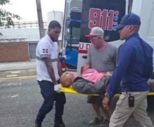 Santo Domingo.– El Fotoreportero Franklin Guerrero recibe atenciones médicas tras desplomarse en la misa por el décimo mes de la tragedia en la discoteca Jet Set.