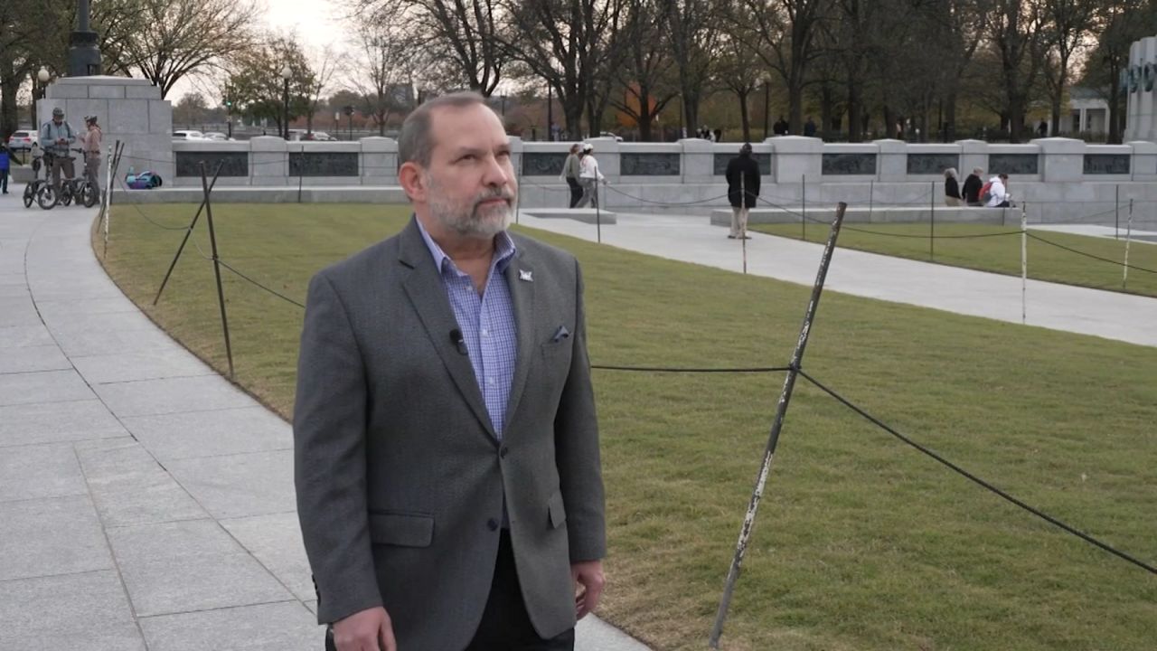 Nos encontramos en el monumento a la Segunda Guerra Mundial en Washington, la capital de Estados Unidos, en un día en el que se conmemora a los veteranos, a las personas que han participado en las diferentes guerras del país.