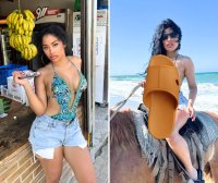 rewrite this title Hermana de Cardi B dándose un baño de pueblo y playa en RD (fotos)