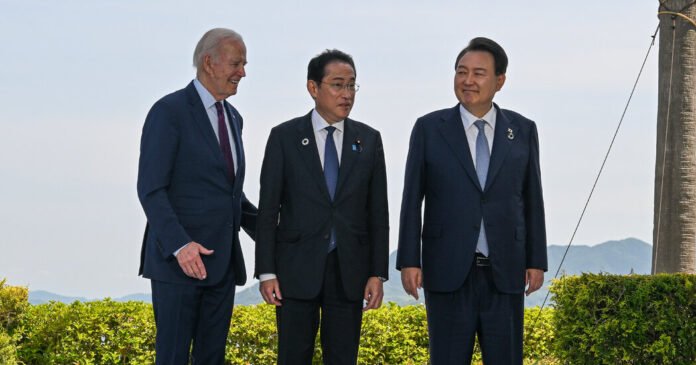 El presidente Biden recibirá al primer ministro Fumio Kishida de Japón y al presidente Yoon Suk Yeol de Corea del Sur hoy en Camp David para tomar un paso importante hacia una asociación militar y económica tripartita.