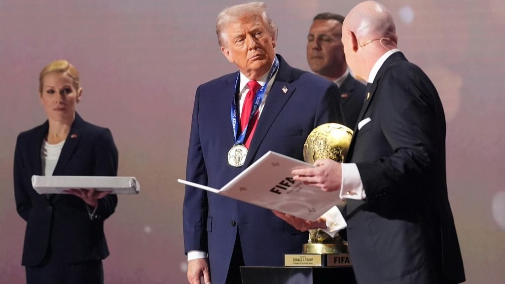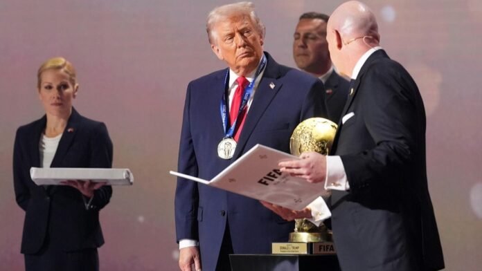El presidente Donald Trump fue galardonado el viernes con el nuevo premio de la paz de la FIFA durante el sorteo de la Copa Mundial 2026, añadiéndole un toque aún más trumpiano a la máxima cita del fútbol.