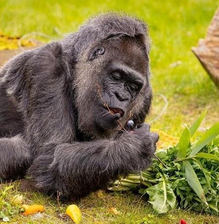 «Prestamos mucha atención a la salud de ´Fatou´ y siempre adaptamos su alimentación teniendo ésta en cuenta. A su avanzada edad Fatou necesita muchos alimentos blandos que pueda masticar bien a pesar de no tener dientes», declaró el responsable del recinto de la gorila, Ruben Gralki.