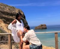 A través de su cuenta de Instagram, Sosa publicó una fotografía posando frente al Morro de Montecristi, mientras McCarty le besa el vientre.