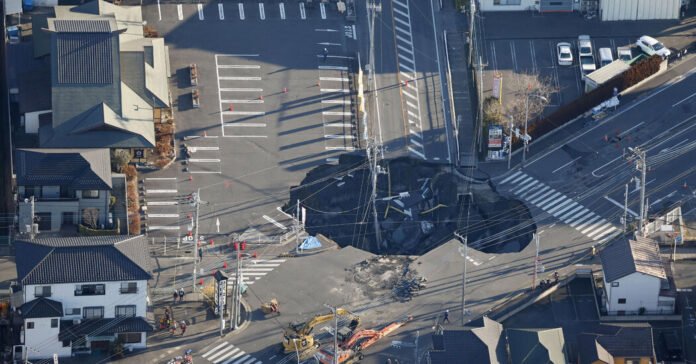 Las autoridades locales dijeron que el colapso fue provocado por una tubería de alcantarillado estallado debajo de la carretera que transporta aguas residuales a un centro de tratamiento cercano. El daño a la tubería ha llevado a la prefectura a emitir una directiva para 1.2 millones de residentes en el área para abstenerse de usar agua.