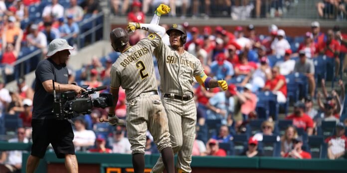 FILADELFIA — Manny Machado alcanzó un hito en Citizens Bank Park el sábado por la tarde, conectando el jonrón 300 de su carrera en la parte alta de la octava entrada para darle a los Padres una ventaja de 4-3 sobre los Filis. Sin embargo, la heroicidad de Machado duró solo media entrada.