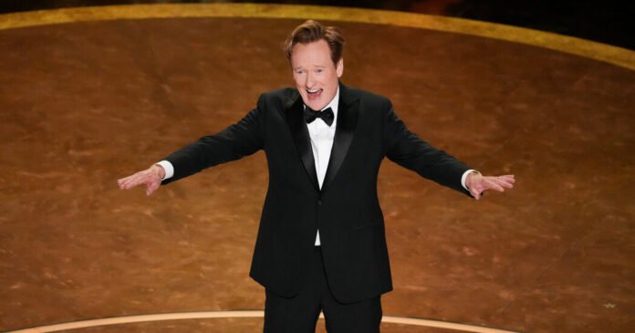 Todo el asunto tenía un toque ligero: poco tostado y sin política. La broma más nerviosa podría haber sido cuando prometió que no se usaba AI para hacer los Oscar, antes de fusionar: «Usamos trabajo infantil». Pero tienes la sensación de que este frasco importaba menos que su seguimiento, cuando Conan agregó de la nada: «Perdimos al pequeño Billy». No desde que David Letterman, el anfitrión de los Oscar más subestimado de la era moderna, tiene un monólogo tan loco.