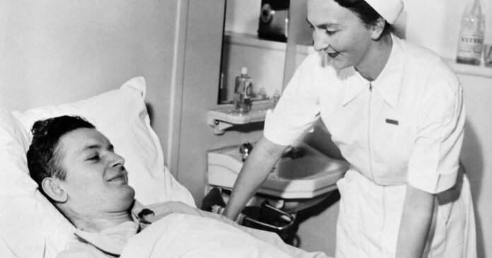 “Trabajaba bajo la luz de una lámpara eléctrica en el pasillo, con una rodilla en el suelo y la otra en el borde de la camilla”, continuó. “En este subsuelo de sufrimiento, todos los días atendía a los heridos, les aplicaba inyecciones, cambiaba vendajes y distribuía medicinas”.