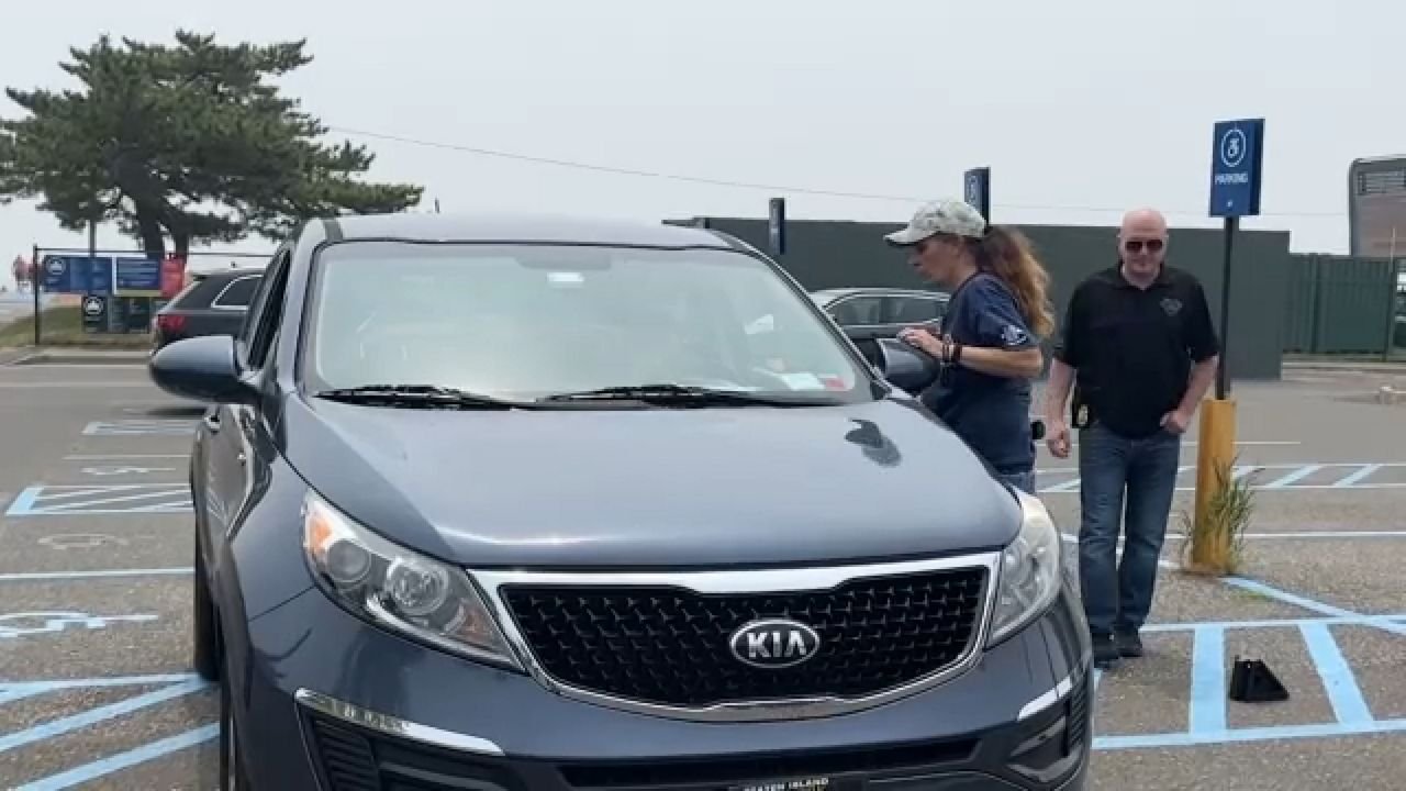 Karen Parana llegó al operativo de entrega gratuita de Apple Air tags o dispositivos GPS y plasmado de números de serie a los catalíticos de distintos carros en la comunidad de Staten Island.