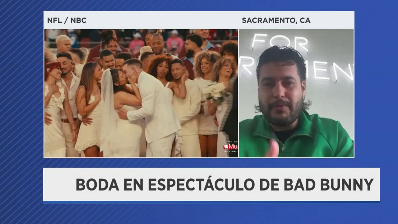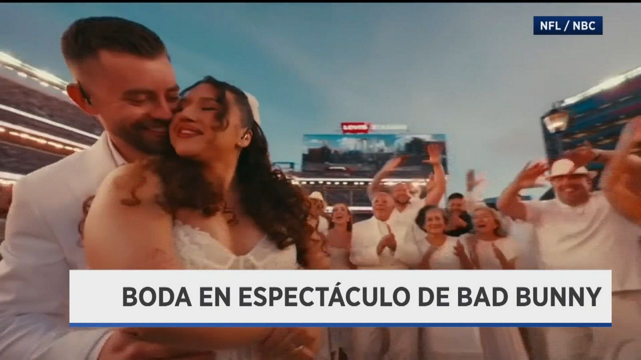 Uno de los momentos más grabados del show de Bad Bunny en el medio tiempo del Super Bowl del domingo es la boda de una pareja en medio del espectáculo.