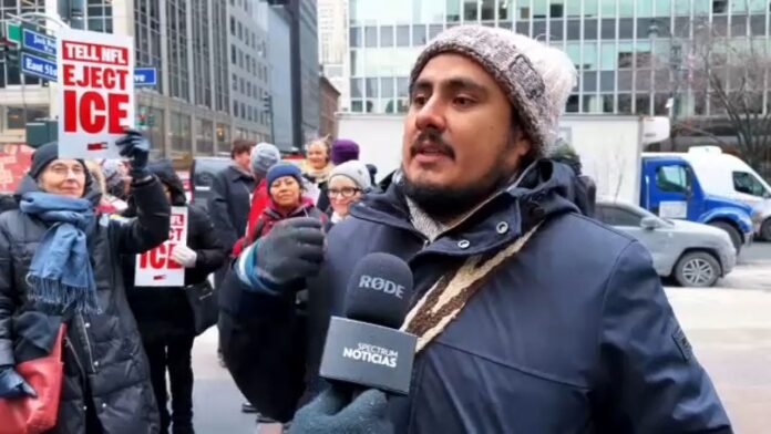 “Con esa amenaza, este que nos está diciendo de que nosotros no pertenecemos en lugares públicos que no pertenecen en lugares tan grandes como un acontecimiento americano que es el Super Bowl”, comentó Diego Jesús Bartesaghi, de la organización Se Hace Camino Nueva Jersey.