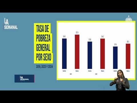 La tasa general de pobreza por sexo mostró una disminución importante entre 20219 y 2024. En 2019 en hombres el porcentaje era de 24.2% en mujeres 27.3%, en 2023 en hombres era 21.8%, en mujeres 24.2% y en 2024 en hombres 17.8% y en mujeres 20.1%.