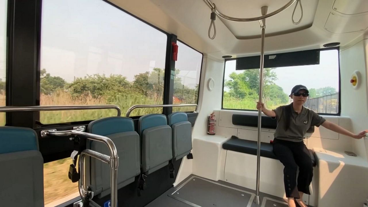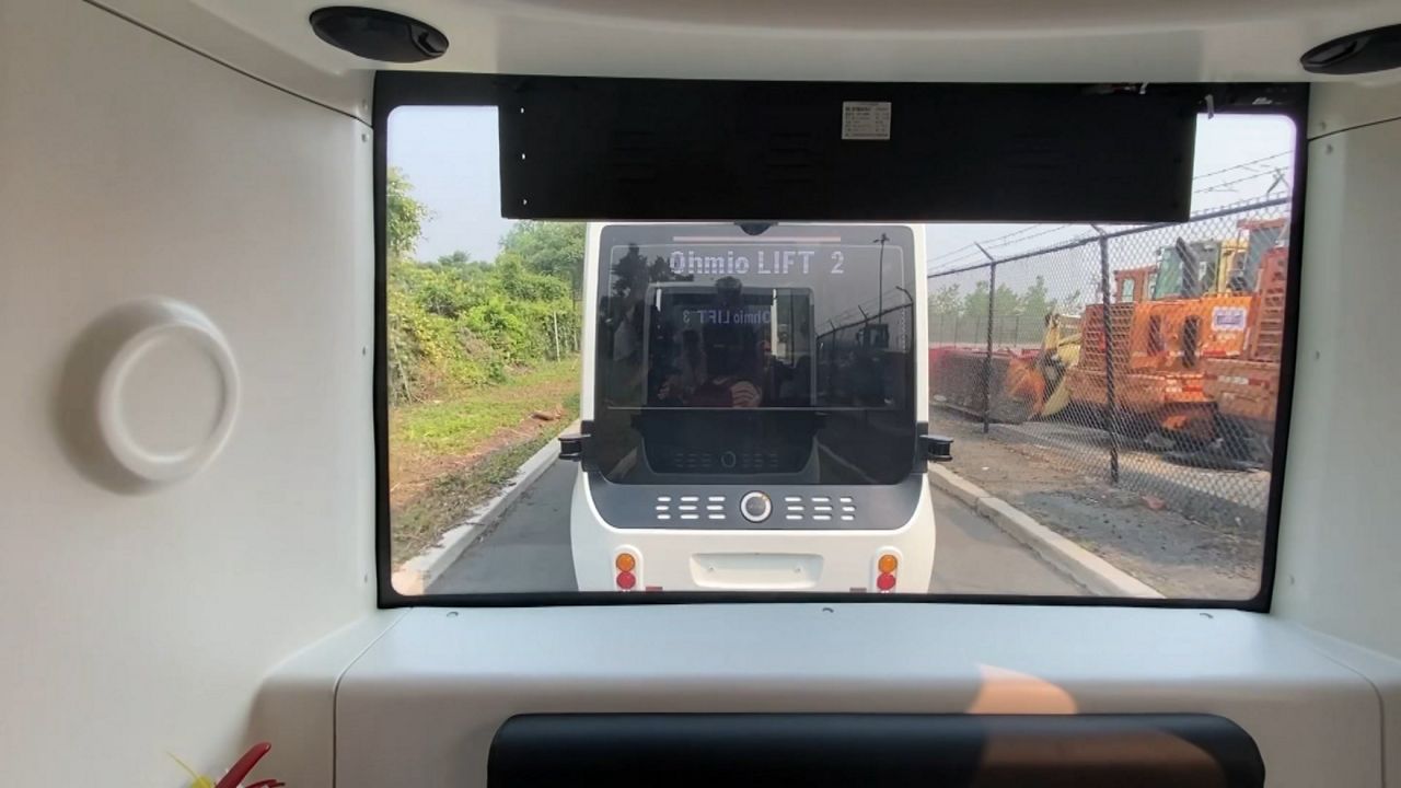 Los autobuses sin conductor diseñados por una empresa de Nueva Zelanda, fueron probados recientemente en el estacionamiento del aeropuerto John F. Kennedy.