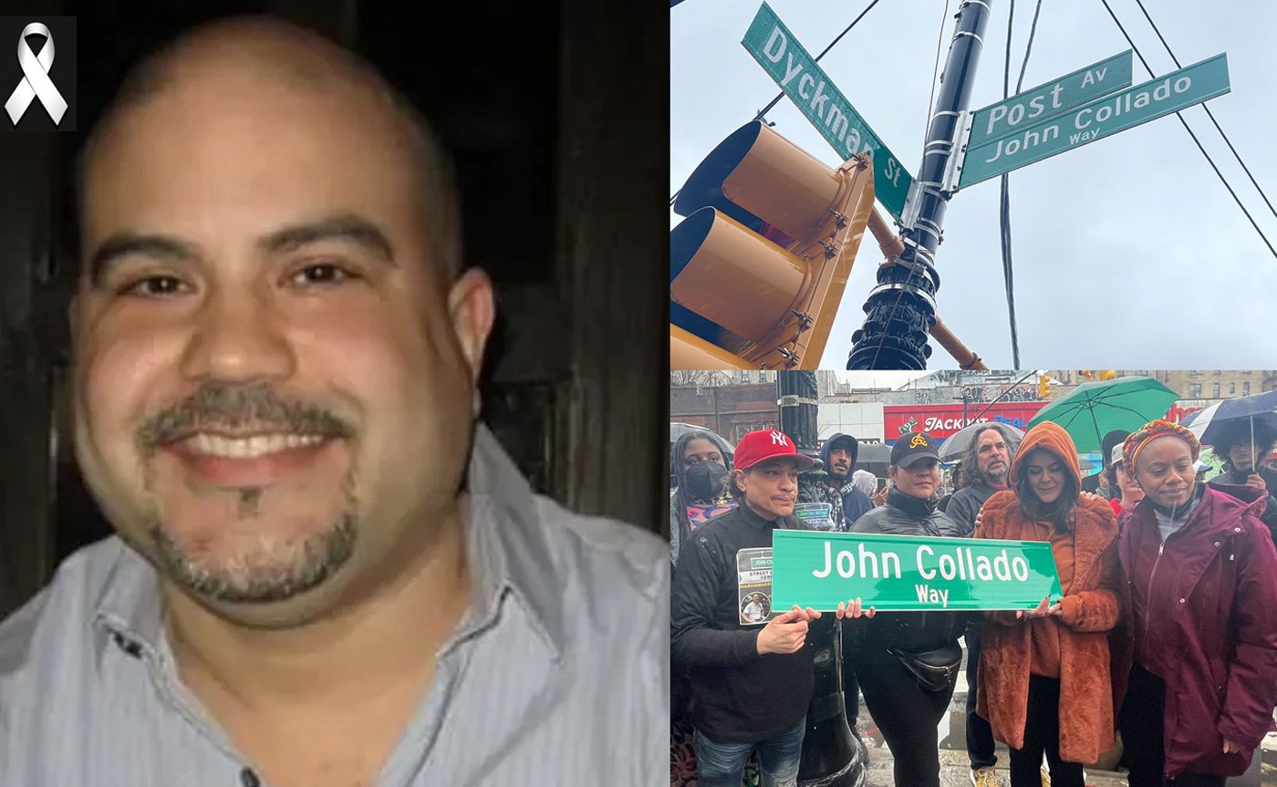 NUEVA YORK._ La esquina de la intersección de la calle Dickman y avenida Post en el sector Inwood del Alto Manhattan, fue bautizada el sábado en memoria del competidor de lucha libre profesional John Collado, nativo de Santiago de los Caballeros asesinado por el policía encubierto del cuartel 34 James Connolly el 6 de septiembre 2011, hace 12 años.