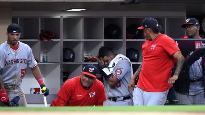 San Diego – Nacionales de Washington receptor Keibert Ruiz fue colocado en la lista de lesionados de 10 días el martes, un día después de ser golpeado en la cabeza por un balón de falta de un compañero de equipo de su compañero de equipo. Josh Bell mientras que en el refugio.