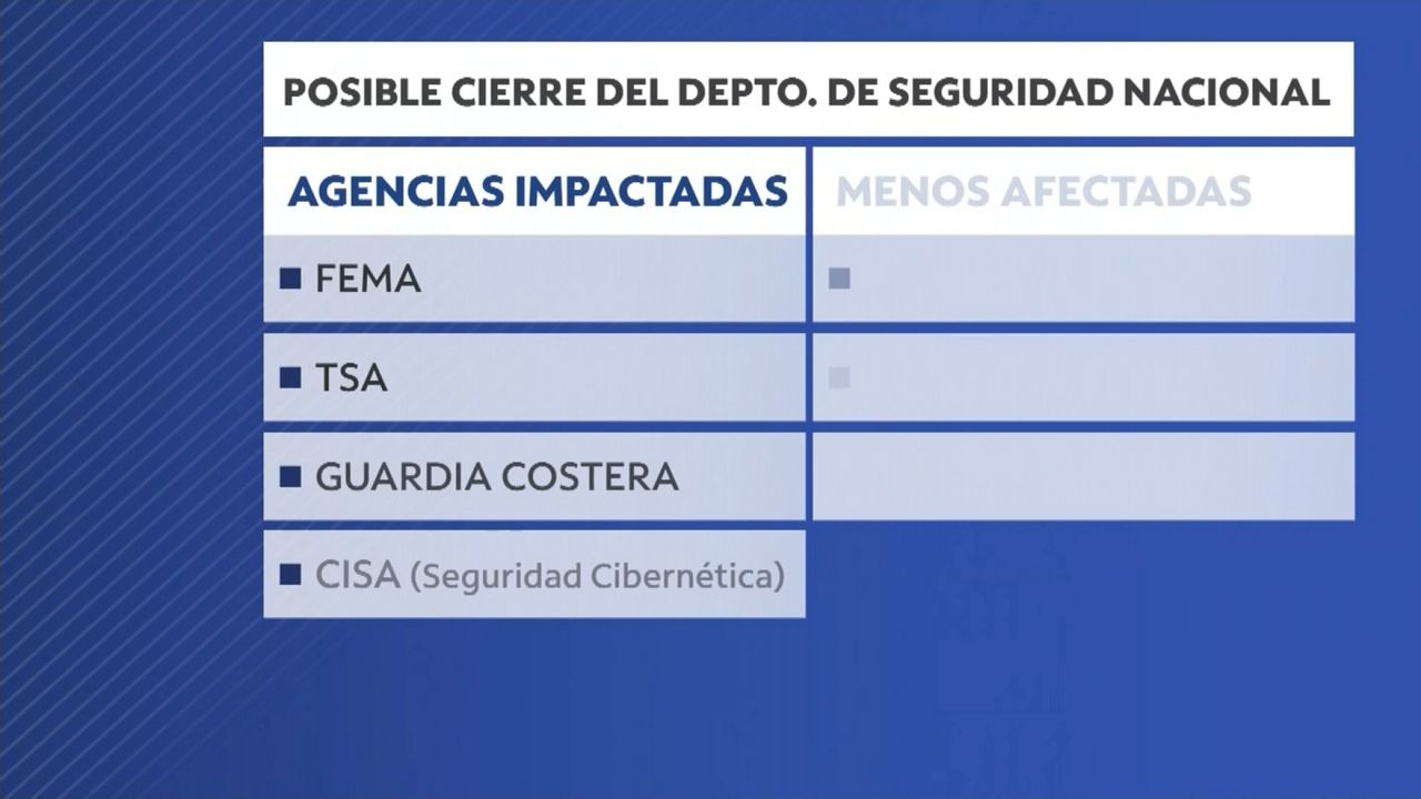 Las agencias más impactadas serían, FEMA, TSA, la Guardia Costera, y Cisa de Seguridad cibernética, y es poco probable que este cierre signifique algo para las operaciones de ICE y otras agencias de inmigración, ya que estas recibieron unos 75 mil millones de dólares el año pasado con la aprobación del proyecto de ley «Grande y Bello».