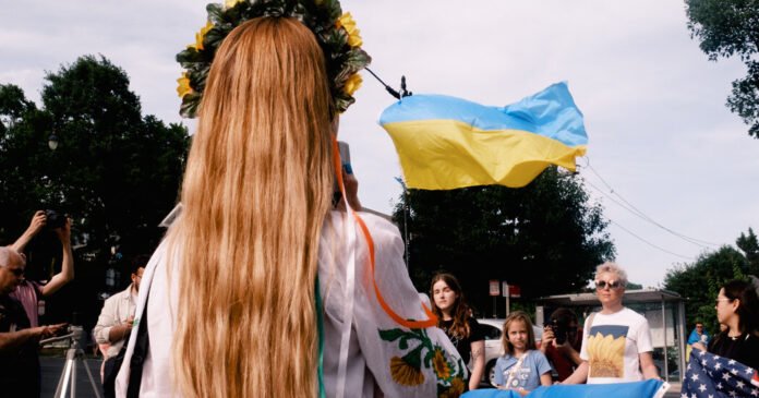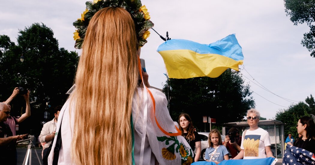 Cada pocas semanas, un espectáculo de luces con la bandera ucraniana azul y amarilla, y ocasionalmente una blasfemia en ucraniano sobre el presidente ruso, Vladimir Putin, se proyecta en la fachada blanca de la embajada rusa en Washington. Rusia ha contraatacado con un gran reflector, paraguas para obstruir las proyecciones e iluminaciones propias, como dos Z blancas gigantes, un símbolo ruso nacionalista del esfuerzo bélico.