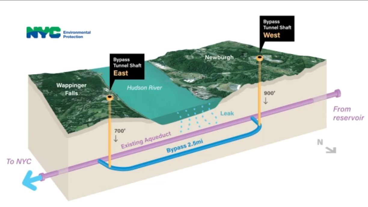La obra incluye la construcción de un túnel de 2.5 millas que desviará el agua de las áreas con fugas, y la reparación de una sección adicional en el condado de Ulster.