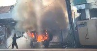 rewrite this title Vehículo se incendia frente a Ágora Mall (video) – Remolacha