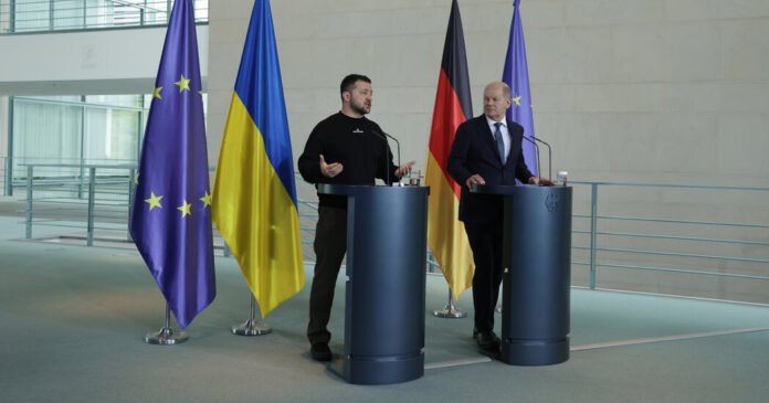 El Sr. Zelensky fue escoltado a Berlín por aviones de combate alemanes para su primer viaje a Alemania desde que comenzó la invasión a gran escala de Ucrania por parte de Rusia hace más de un año. La visita fue la más reciente de una serie de viajes recientes a países aliados por parte de Zelensky en los que buscó expresar agradecimiento, impulsar entregas más rápidas de armas y promover la diplomacia más amplia de Ucrania a medida que avanza la guerra de 15 meses.